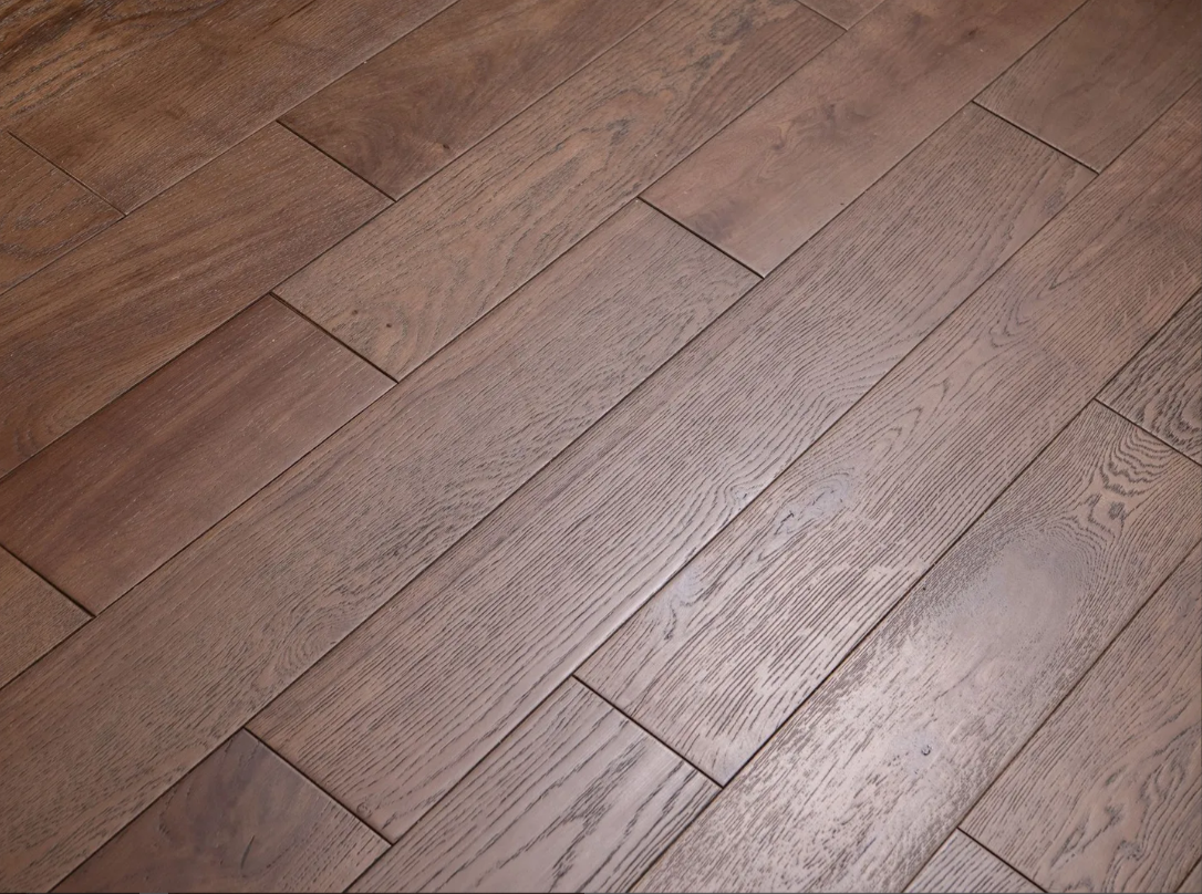 Bring bold elegance into your home with the - Black Washed Brushed & Lacquered engineered wood flooring. The deep black-washed tones paired with a subtle brushed texture create a striking, contemporary aesthetic, while the lacquered finish offers lasting protection and a smooth, refined surface.