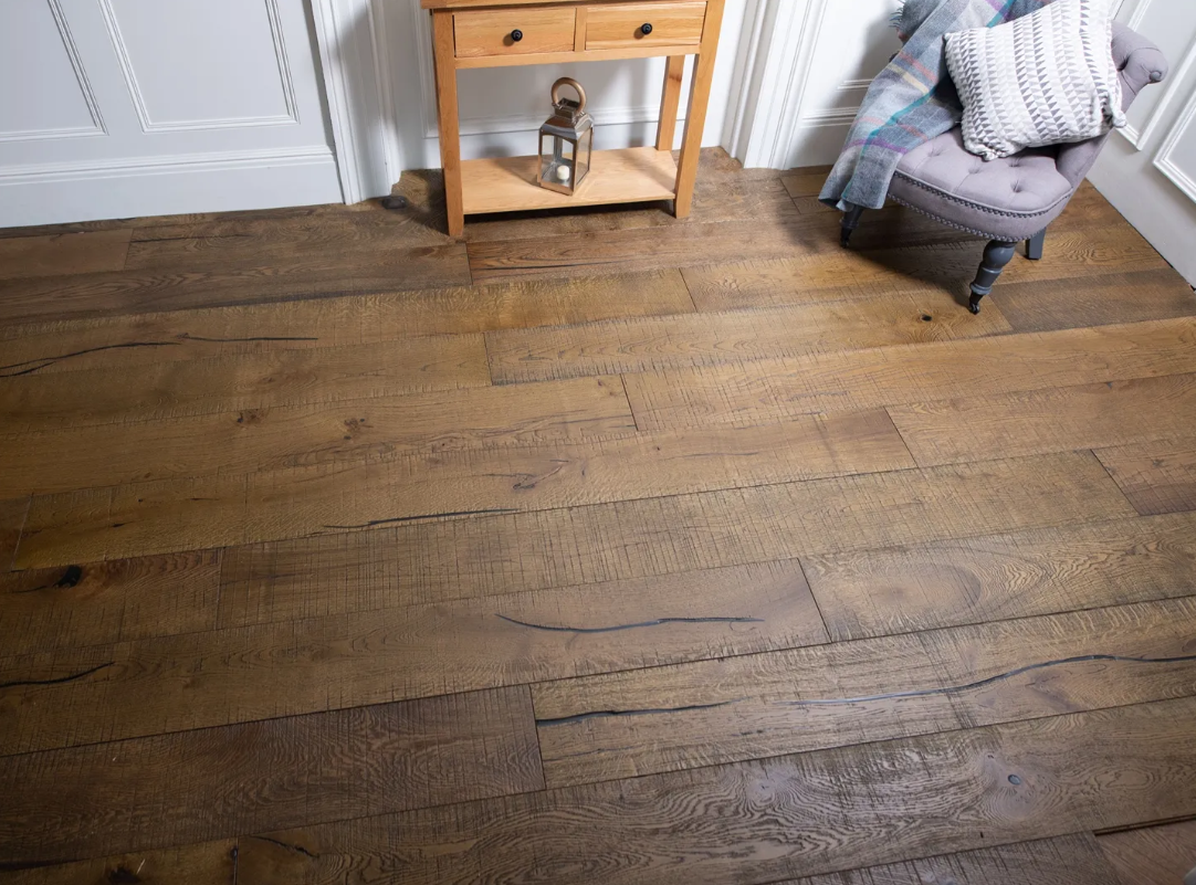Bring rustic charm and bold character to your space with the 220 Golden Saw Mark Distressed engineered wood flooring. Featuring dramatic saw marks, a hand-distressed texture, and a rich golden hue, this floor tells a story in every plank. The hardwax oil finish enhances its natural beauty while providing lasting protection and a warm, matte look.