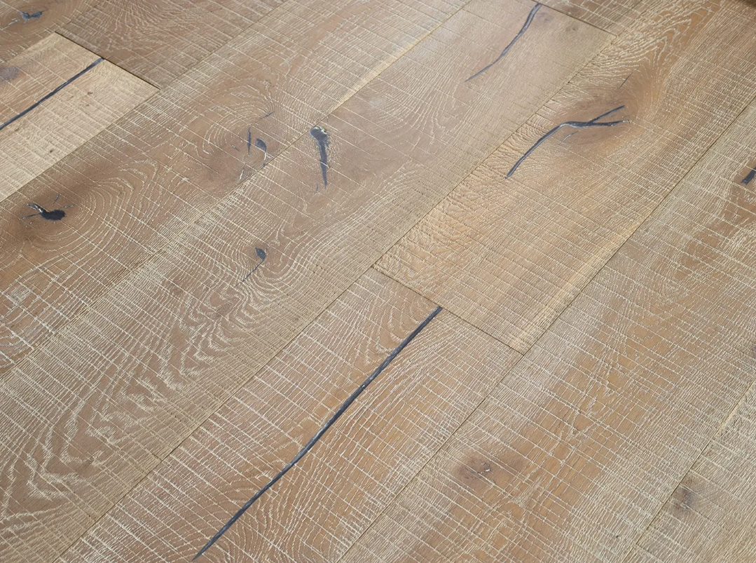 Bold, textured, and full of character — the 220 Smoked Grey Saw Mark Distressed engineered wood flooring makes a striking statement. With its smoked grey tones, authentic saw marks, and distressed surface, this floor delivers a rustic, weathered look, enhanced by a protective hardwax oil finish that deepens the natural grain and adds a soft, matte texture underfoot.