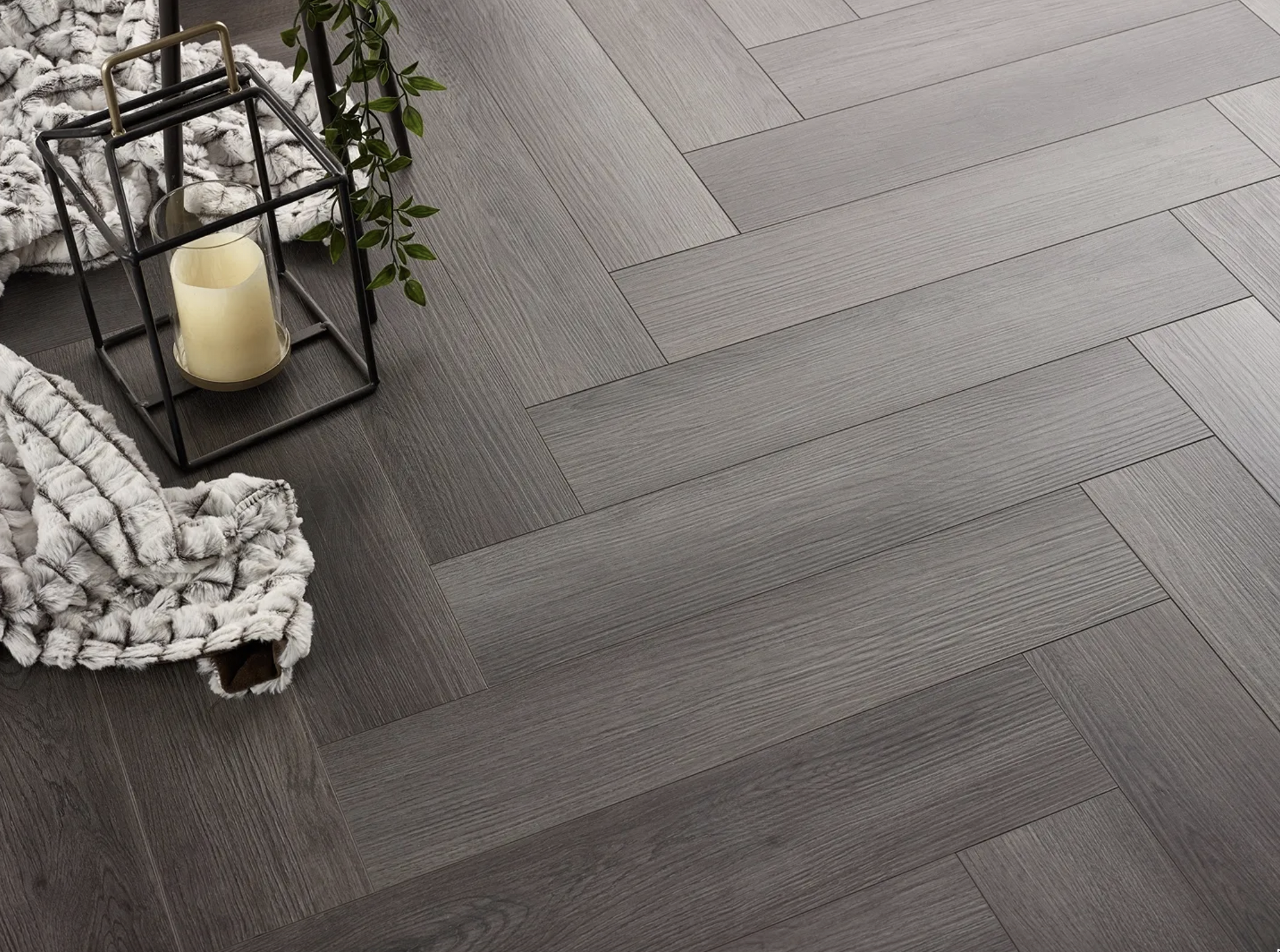 Shadow Oak – HYDRO Loc Rigid Core Herringbone SPC LVT blends rich tones with classic craftsmanship, delivering a floor that is both striking and practical.