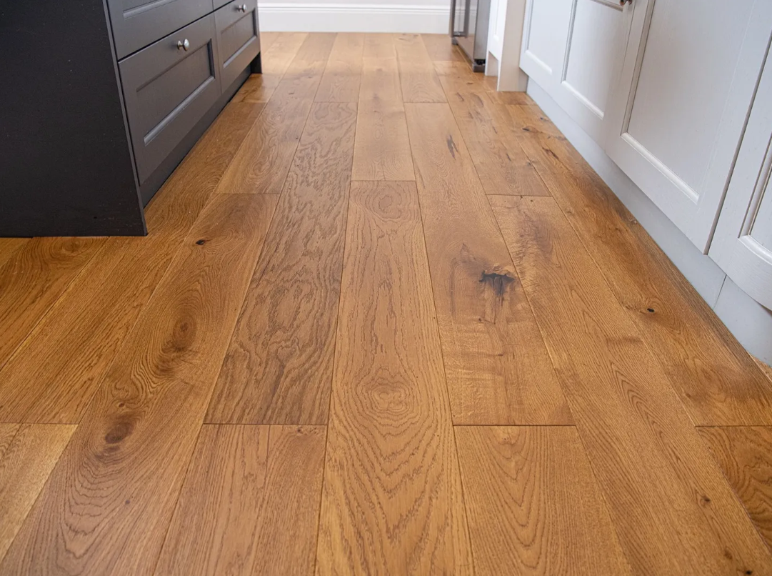Infuse your home with rich character and timeless charm with the 220 Golden Handscraped Lacquered engineered wood flooring. Featuring a warm golden tone and hand-scraped surface, this floor showcases unique texture and depth in every plank. The lacquered finish enhances durability while preserving the handcrafted feel — ideal for creating a space that feels both rustic and refined.