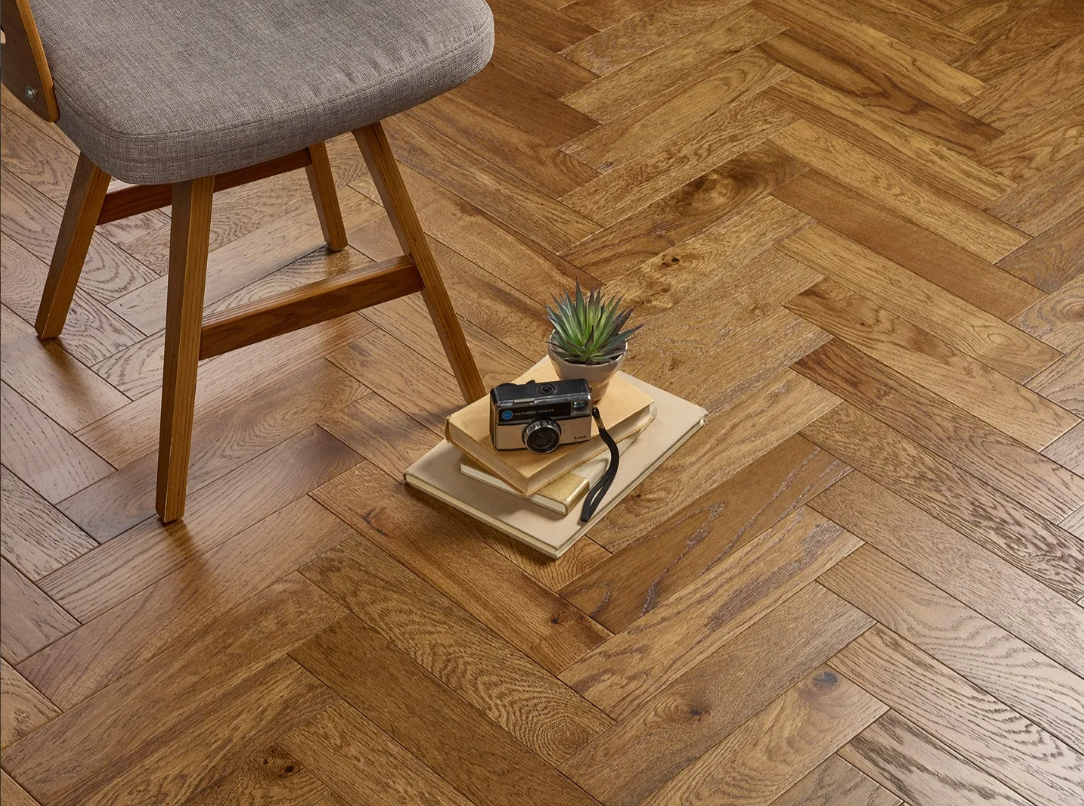 Victoria 90mm Cognac Brushed & Lacquered Herringbone Engineered