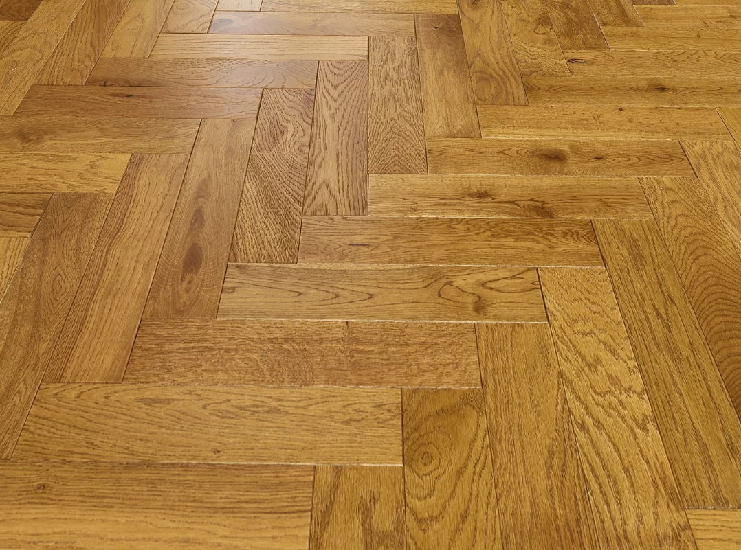 Victoria 90mm Light Golden Brushed & Lacquered Herringbone Engineered