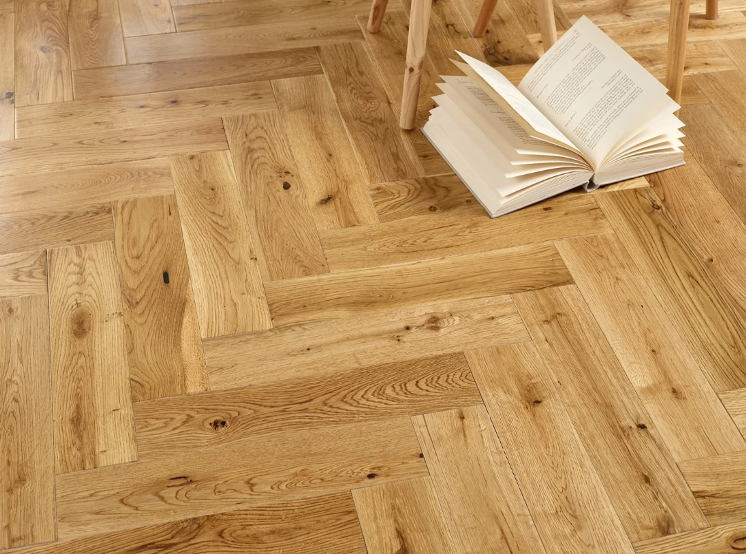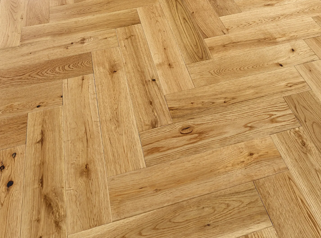 Victoria 90mm Natural Lacquered Herringbone Engineered