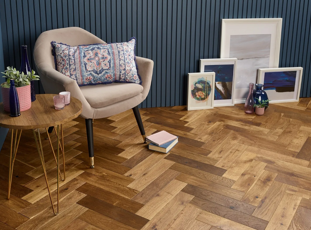 Victoria 90mm Smoked Brushed Hardwax Oiled Herringbone Engineered