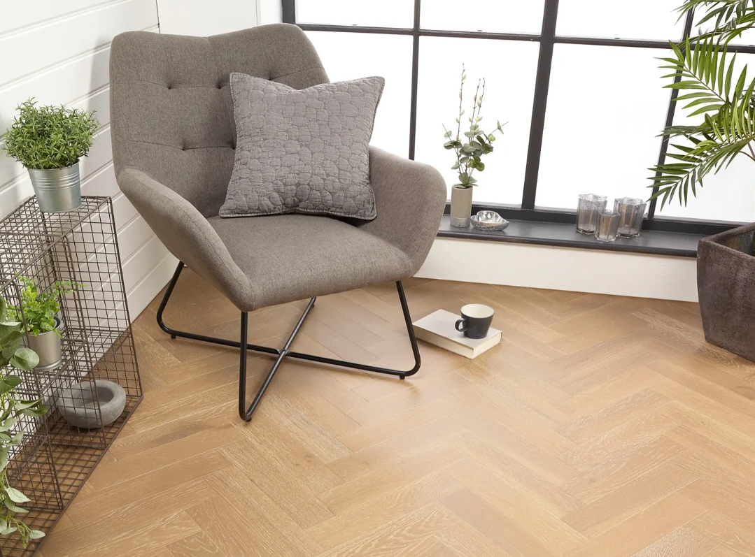 Victoria 90mm Smoked Grey Brushed & Lacquered Herringbone Engineered